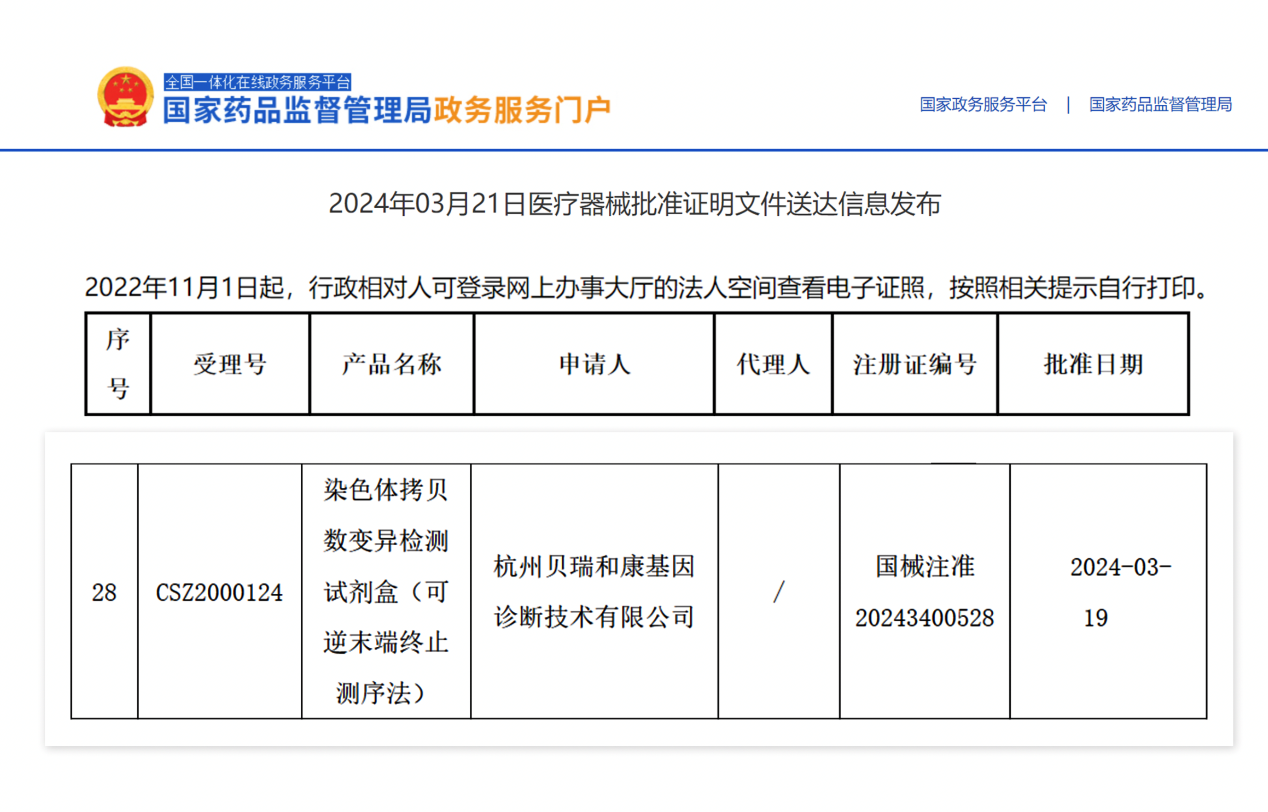 貝瑞基因CNV-seq檢測試劑盒獲國家藥品監督管理局(NMPA)批準上市!